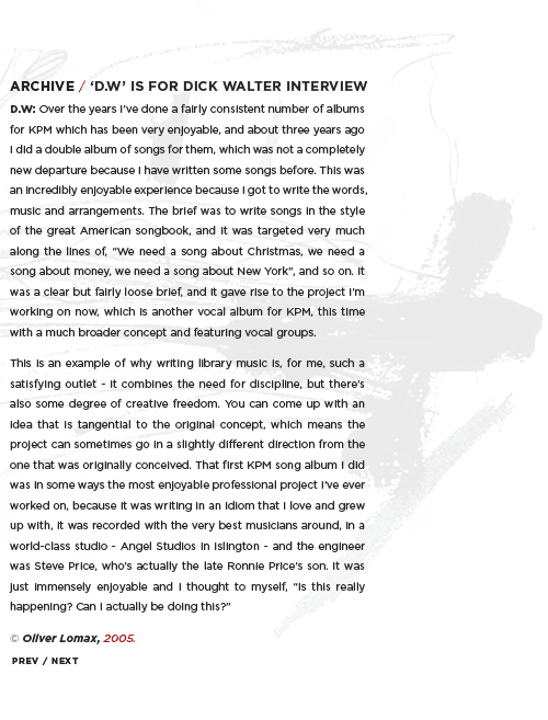 This CD served as my introduction to the talents of saxist-arranger-composer Dick Walter, and a very impressive introduction it proved to be. Each track is a Walter original, and they span a two-decade period, during which modern big band jazz has been at a premium, to say the least. As a jazz composer Dick Walter can stand alongside such worthies as Gerry Mulligan, Bill Russo, Francy Boland, Bob Florence and Bill Holman.